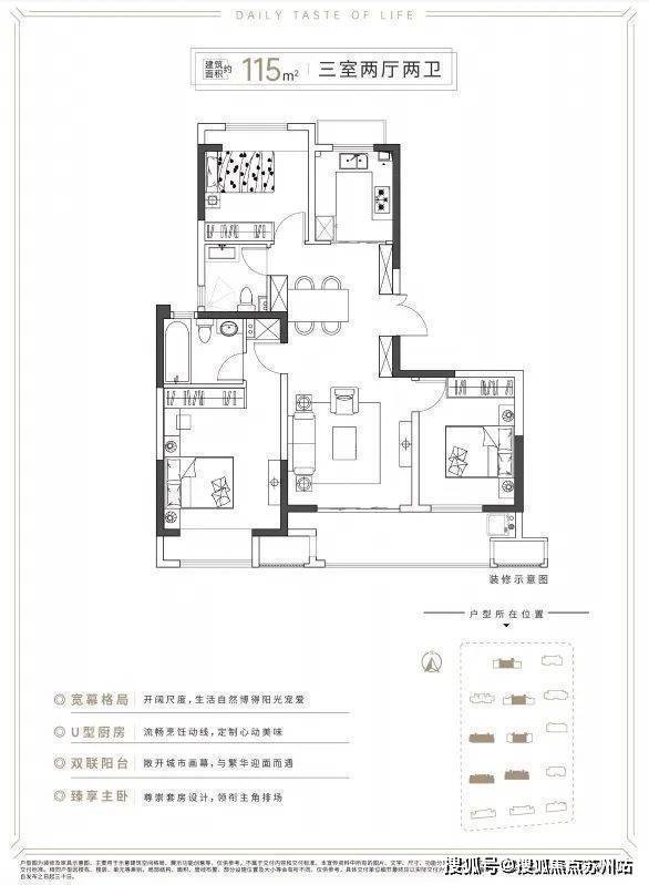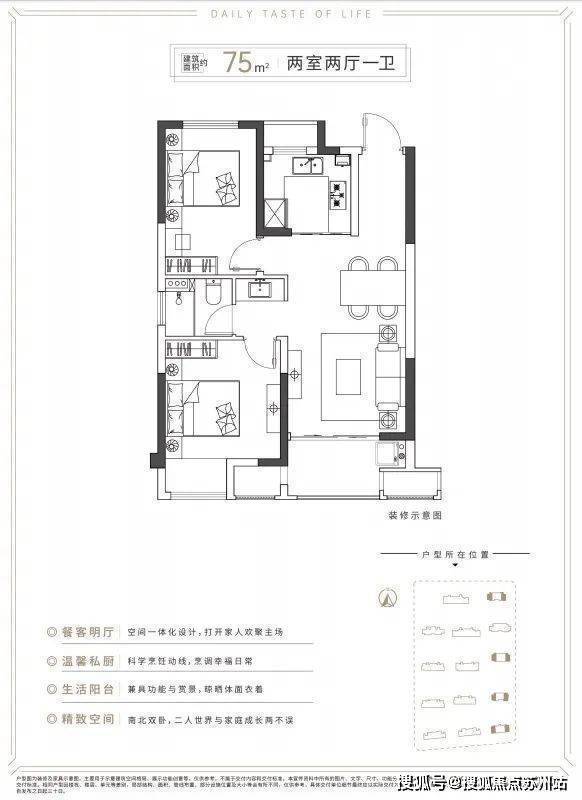 75-95㎡(二至三居)、115-160㎡(三至四居),设计注重采光与空间利用率,适配刚需及改善需求