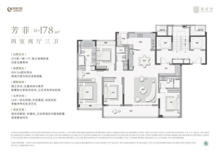 目前主力在售的户型涵盖154㎡、169㎡、178㎡、181㎡等多个面积段的四房,能满足不同家庭的改善需求。比如约178㎡的户型,做到了四房两厅三卫,功能分区明确,居住舒适度极高,是典型的改善型四房设计。