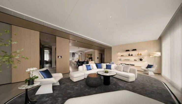 高奢精装标准:层高普遍在3.3-3.5米,远超普通住宅。精装修标准很高,厨电品牌包括美诺、博世,卫浴选用劳芬、Dornbracht等国际一线品牌。