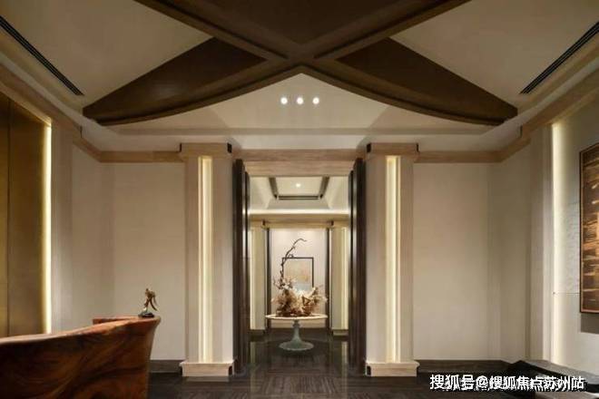 复刻马勒别墅的海派席纹砖石拼花,雕琢顶豪别墅的气场。天地之门拱券图案、精致刻槽建筑腰线、邬达克式经典微弧,勾勒风貌别墅的新精致主义格调。