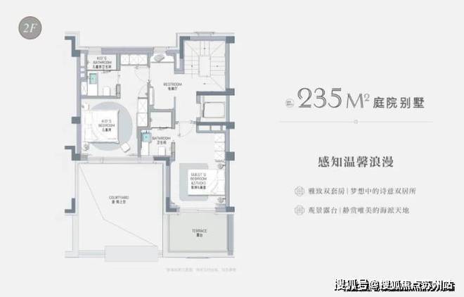 以建面约235㎡的庭院别墅样板房为例,户型附赠地下室、庭院、露台、阁楼空间,附赠面积达到户型总建面的60%左右,市场上少之又少!