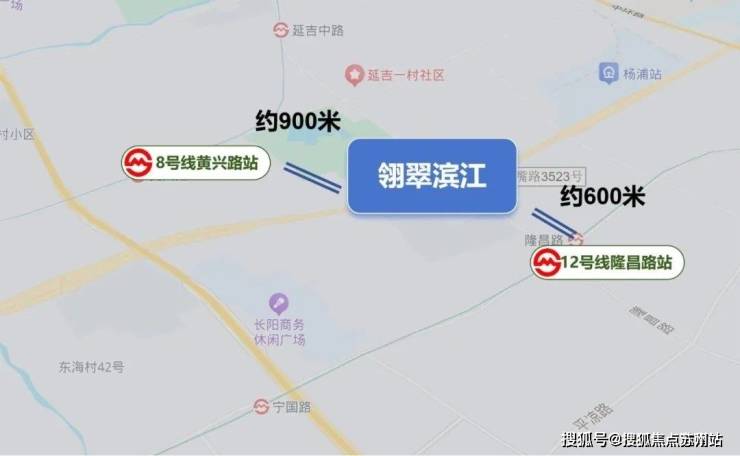 项目南向直线距离12号线隆昌路站约600米,步行可至;北向直线距离8号线黄兴路站约900米,同样步行可至。