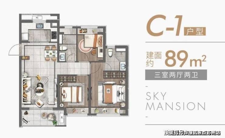 上海宝山天铂建面约83~89㎡朗阔三居全能户型,动静分离,静谧舒适,每1cm的考究,都映射着每一个人居的诉求。