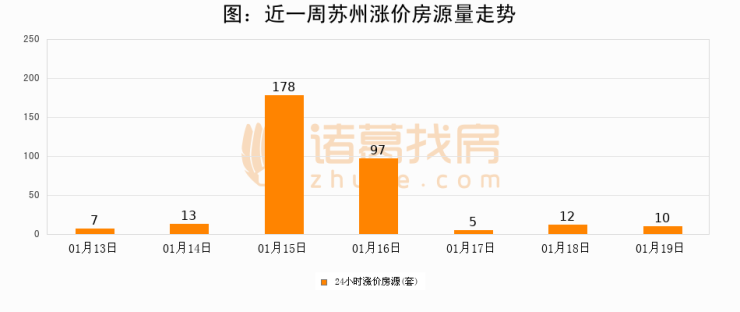 根据诸葛找房数据显示,苏州24小时涨价房源量为10套,较01月18日减少2套,环比下降16.7%。与此同时,涨价房源占比小幅回落,对于购房者来说是一个入市窗口期,购房者可抓住时机入市。
