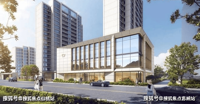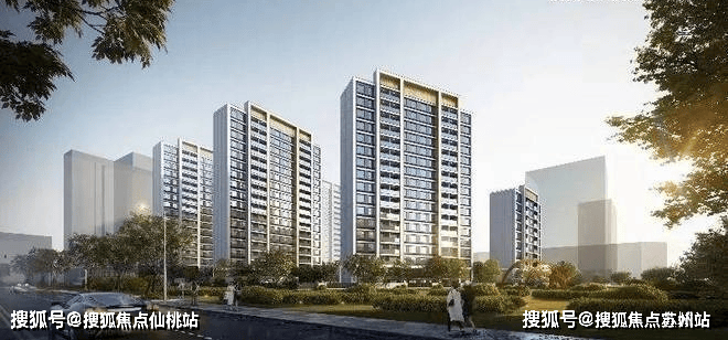 项目外立面采用现代简约建筑风格,点缀金色的框线,极简优雅但又不失格调,符合小区所在莘庄商务区稀缺核心住宅的定位。