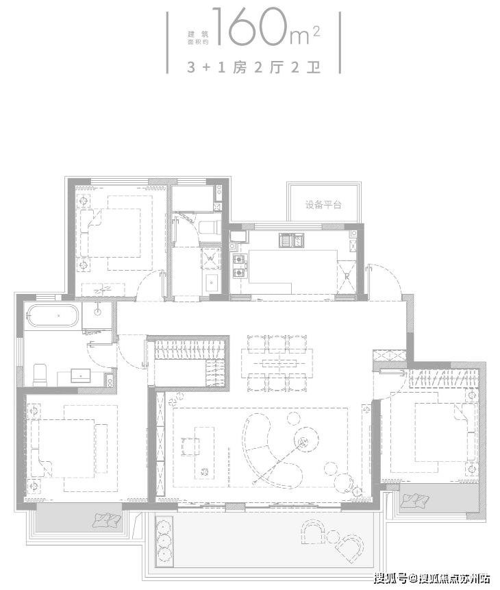 160㎡:四居室,满足多代家庭需求