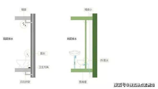 这样的设计大大节约了室内空间、美化了视觉效果,同时消除卫生死角,防止异味。各种管道不穿越楼板,上下住户无干扰,做到静音排水,告别噪声。