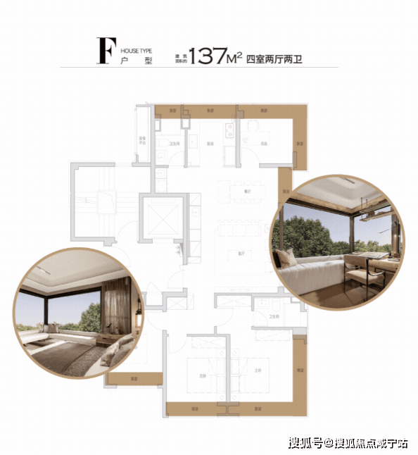 2、建面约137㎡4房也同样非常有性价比,在西边套有陆家嘴三件套景观、东边套有整面江浦公园的景观资源加持下,最低价还能做到1580w,景观楼层最好的一套总价也仅约2090w。
