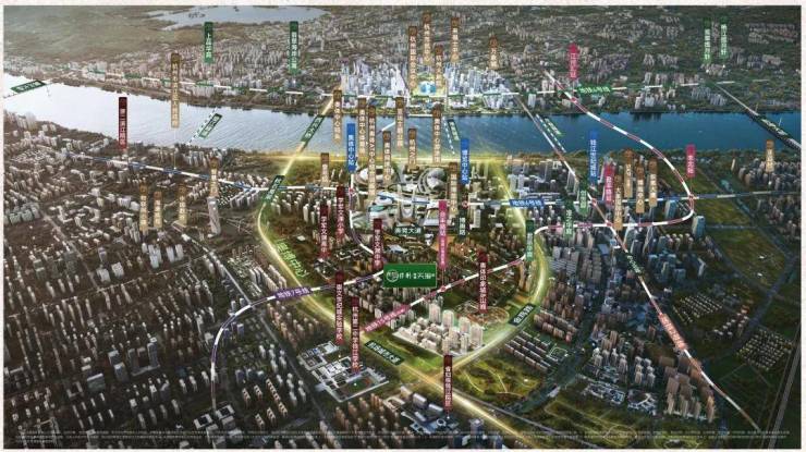 项目属于真奥体板块——钱塘江、金鸡路、机场大道围合的这片锥形区域。