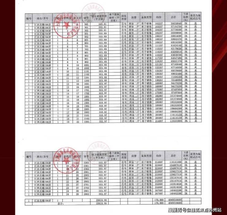 一房一价表如下: