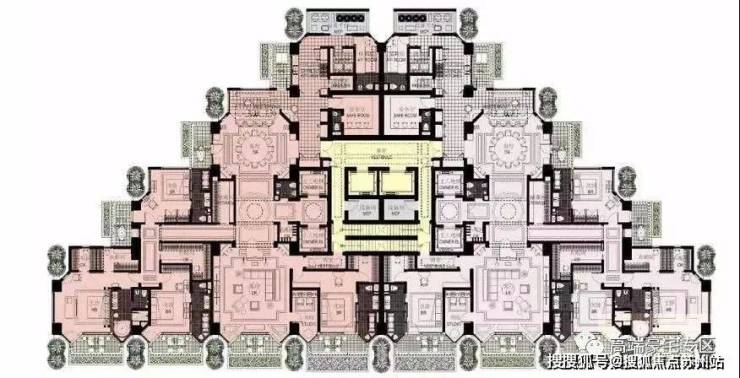 项目分三期开发,本次开盘为2号楼,预计今年开盘,2号楼户型分布为一层4户,中间两套为375平米边套为680平米复式,总楼层39层,有两层为避难层,避难层会改造成绿化休闲区。