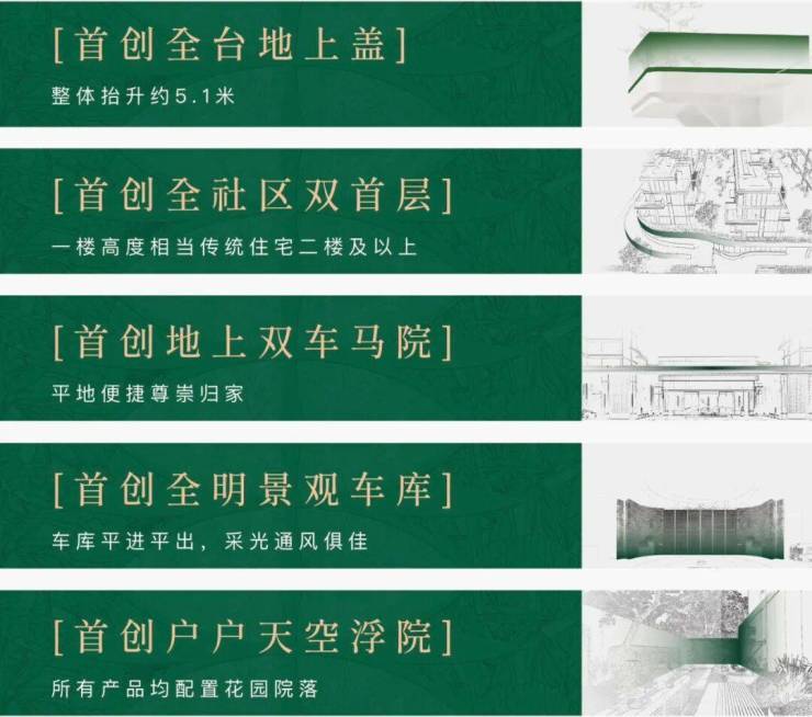 * **创新的“浮岛院墅”概念**:项目以“苏州首座浮岛院墅”为宣传核心,提出了“全台地上盖”、“全社区双首层”、“首层架空车库”等设计。这些设计旨在实现完全的人车分流,并通过整体抬升营造独特的社区景观和归家体验。若能按设计兑现,将是苏州市场一个显著的产品差异点。