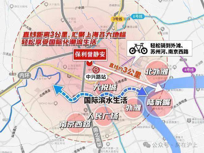 而项目到外滩和平饭店的直线距离正好是约3公里!妥妥的城心烫金地段!