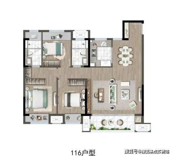 建面约116㎡灵动3+1房