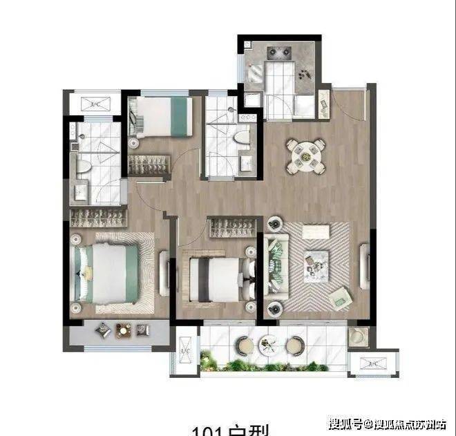 建面约101㎡全能三房