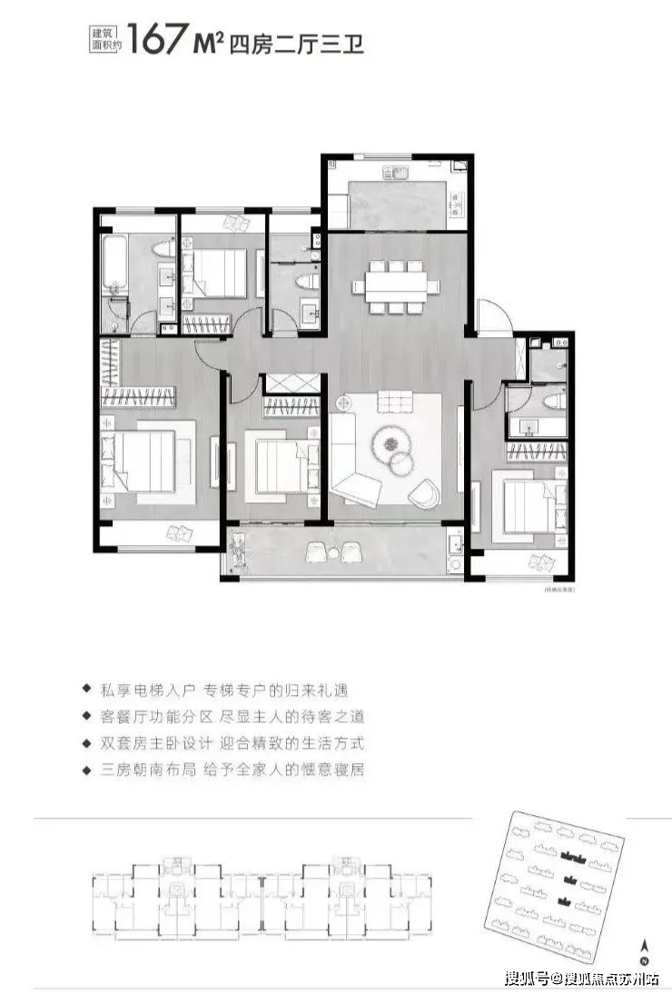 至于167户型,只要预算充足就可以冲的完美户型。这个面积段确实少见,但也不用神化,毕竟大多数人都买不到。
