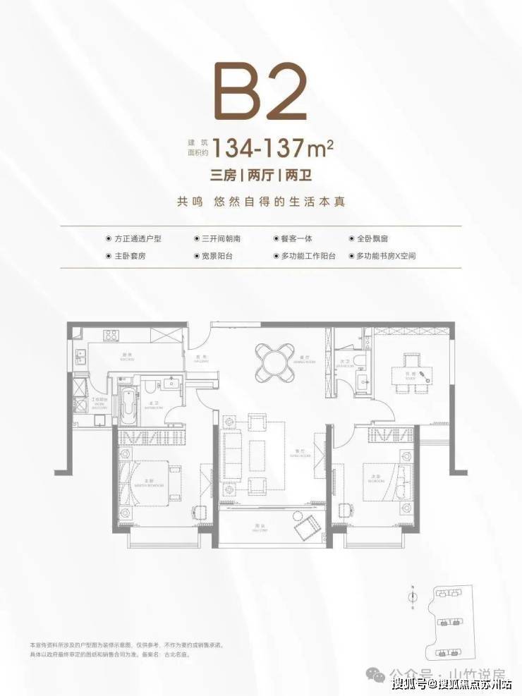 135㎡2+1房: