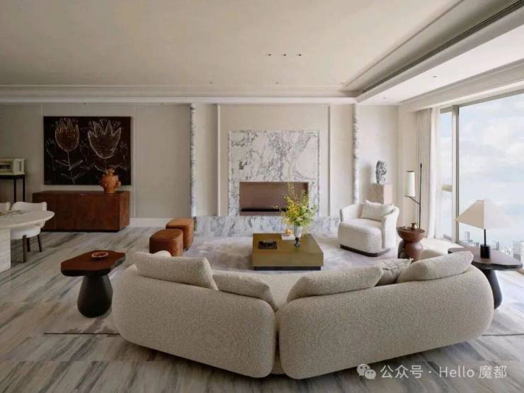 2)转角方厅,引景入室:创新采用转角方厅设计,搭配270°巨幅窗,将梧桐街景与城市地标引入室内.LDK一体化布局,零走道浪费,空间利用率与舒适度拉满.