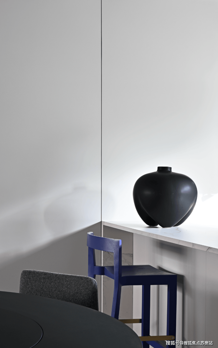 墙面棱角与家具线条直接简练,严谨的秩序中略有灵动之意.家正在理性与感性直接反复拉伸,温暖诠释着“容器”的意义——盛放时间,包容记忆,链接未来.