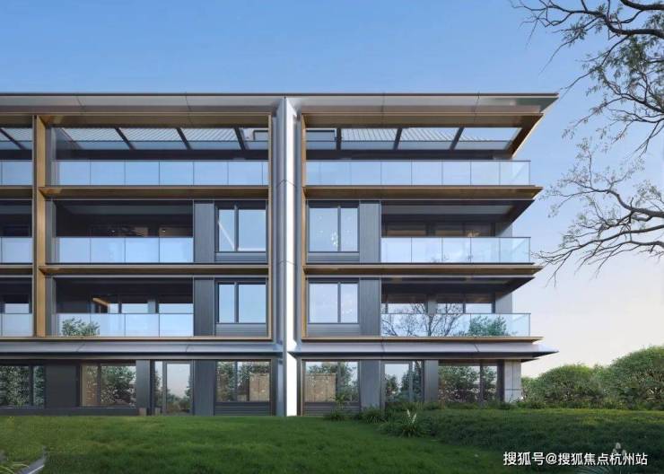 作为板块首个新规代宅,项目立面以铝板、石材与大面积玻璃为主,少量真石漆点缀,呈现出层层叠合的“玻璃盒子”形态。