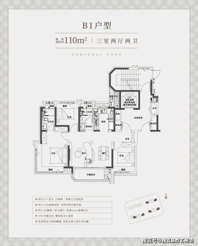 中环铂樾售楼处营销中心:400-8828-814中环铂樾售楼处电话/地址☎:400-882-8814(开发商热线)建面约110㎡三房边套户型,约5.4m超大横厅、南向面宽做到了惊人的约12.3米,堪比别墅级别的产品!巨幕阳台+边套270°景观视野,空间体验与采光感拉满!