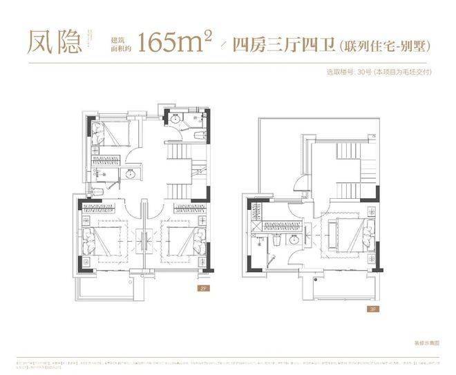 4层叠墅分为上/下叠,上叠建筑面积约139㎡,下叠建筑面积约142㎡,均为4房设计。