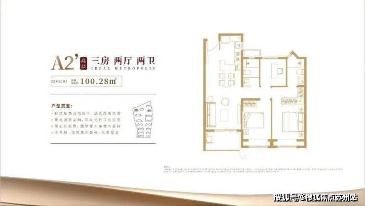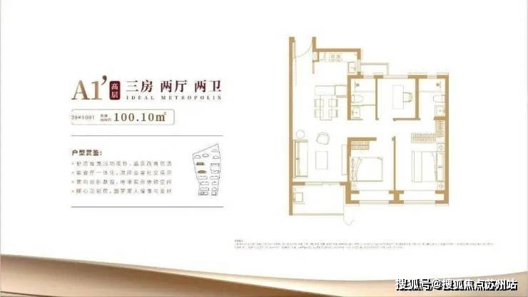 项目主力高层户型皆是建面约100㎡3房2厅2卫,室内布局大致相似,是功能性和尺度感完美结合的明星户型。