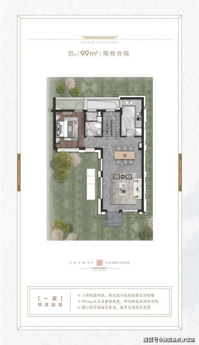 泰禾海上院子售楼处电话☎:400-882-8814(预约热线)✔✔✔以院落空间为中心,270°三面环绕,围合式布局,自然恣意流淌,花木繁盛,有序共生,形成动静皆风景的多重私享。泰禾海上院子售楼处电话☎:400-882-8814(预约热线)✔✔✔客餐厅连接庭院,内外空间过渡自然。先生从容会客,太太莳花弄草,孩子们遨游自然,长辈们躺椅小憩,其乐融融。一草一木,一物造景,既是全家人的休闲庭院,又是当代名士的精神栖息之所。【建筑面积约126㎡臻境合院】