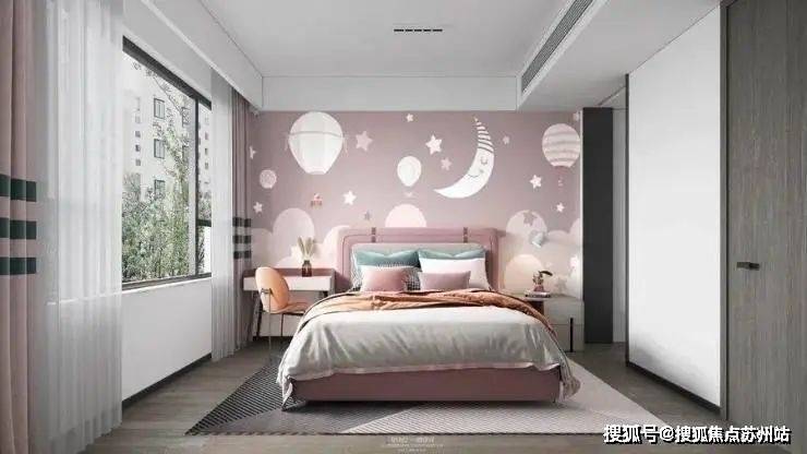 女孩房用粉色打造满满少女心,同时右侧书桌兼顾学习