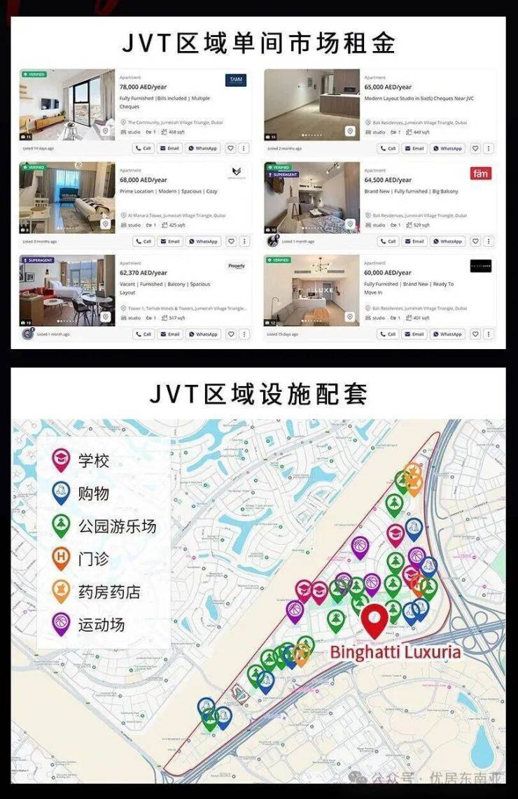 JVT因其家庭友好的环境、低密度规划和完善的配套设施,吸引了大量在附近商业区(如DubaiMarina,MediaCity,JLT)工作的专业人士和家庭租住,确保了高入住率。