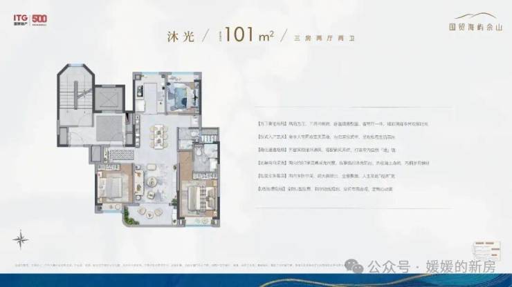 除了叠墅外,全社区仅4幢建面约101㎡沐光全景小高层,通过前瞻排布,几乎做到了户户景观无遮挡.