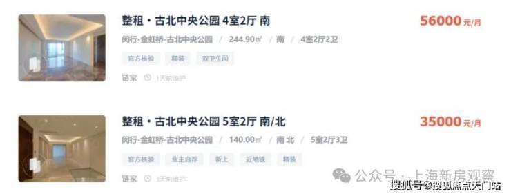 从网上挂牌价格看,古北的大户型房源月租金基本都在35000-55000之间,项目一路之隔的【古北中央公园】,挂牌价格在13-14w左右,161平米的三房,月租金3.8万,可以说投资回报率相当高,而且租客多为驻沪领馆外事人员、外企高管、国际学校陪读家长等,圈层较高且稳定。