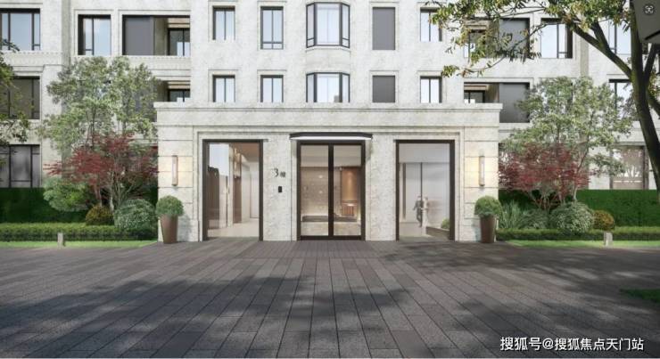 古北99的建筑立面在采用天然黄金麻石材肌理搭配灵动的线条,柔化了石材的坚硬质地,端庄典雅的同时更显时尚。
