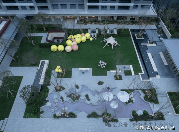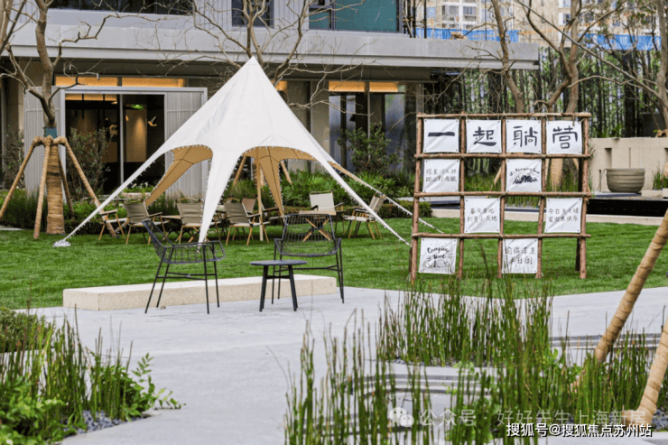 阳光草坪,搭个天幕就能露营,心爱的“毛孩子”也有了玩耍的去处;边上还有小朋友的戏水池,挽起裤腿就能踩水玩.