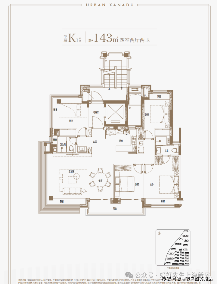 建筑面积约143㎡中叠平层户型,空间尺度丝毫不逊色于周边约150㎡+高层户型,更合适想要追求墅居生活及质价比的购房者!
