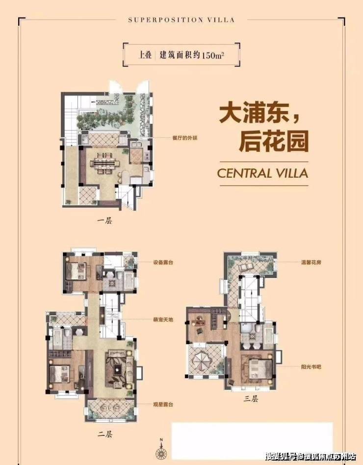 上叠户型是建筑面积150平米的三层,4房2厅中西双厨的全套房设计,特设独立花园入户通道,保障业主私密性.