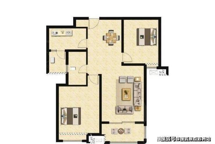 入户直面宽阔客厅与餐厅,南北通透,配备中西双厨.二层空间为双套房设计,