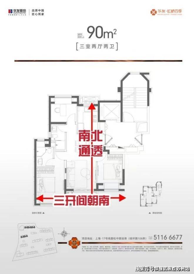 华发虹桥四季售楼处电话:400-867-3567三卧室分离,很好地保障居者的隐私性。不同于其他项目的2+1房,北向房间只能做书房的尴尬局面,项目每个房间格局方正,是真正的三房设计,功能性与尺度感兼具!