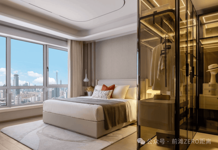 超约70㎡的南向主卧套房,是对品质生活的深层解读。将景观视野最大化地引入室内,并集成了功能完备的豪华卫浴与储物系统,主卧连通蝶形的阳台设计,实现了“套房即小家”的便利与尊享。