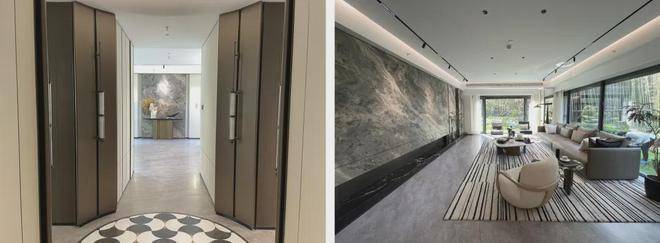 一入户,便是宽敞的双玄关设计,地面铺设着优雅的石材,270度的LDK一体化巨幕端厅,其空间面积高达约66㎡,带来一种豁然开朗的开阔感,东南两侧均配置了大幅面的落地窗,视野无比开阔.