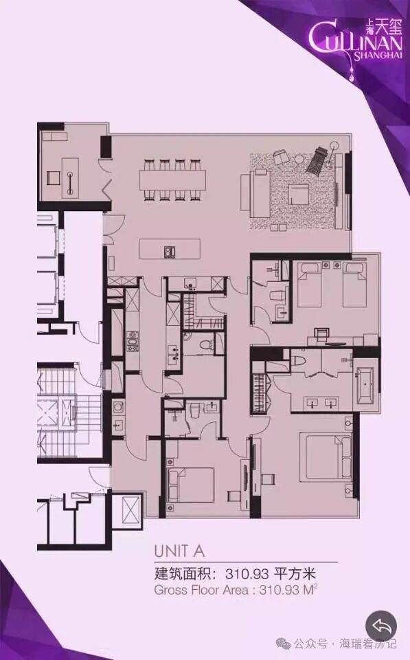 堪称典藏级珍品的“上海天玺ShanghaiCullinan”仅有64套单位,除标准4房单位外,还设有特色花园单位和可私享泳池的限量顶层复式单位,面积由约270至710平方米。