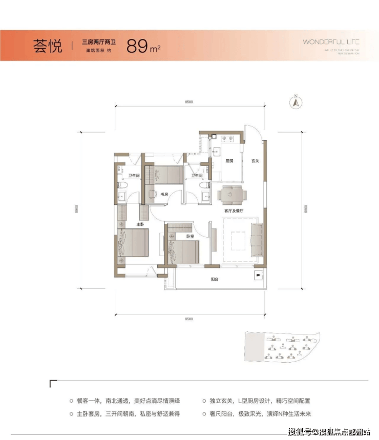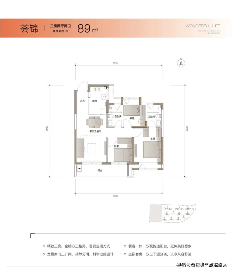 主推建面约89㎡3房2厅2卫