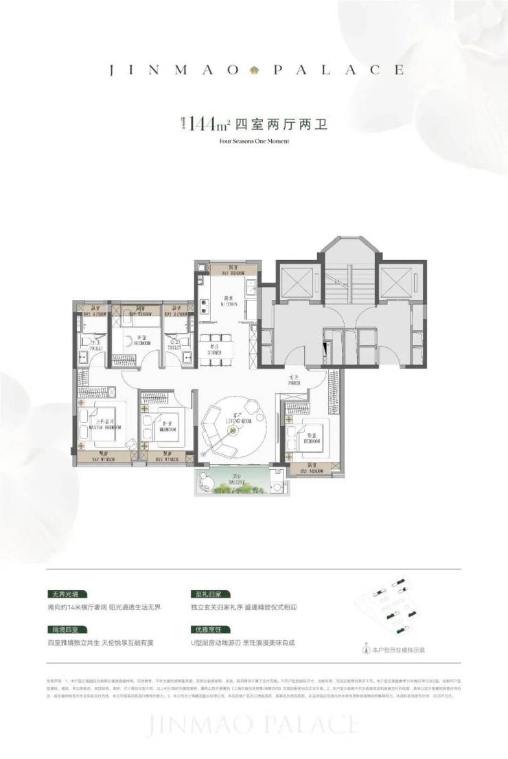 ● 建面约144㎡4房:同价格在杨浦只有百平米3房可选。