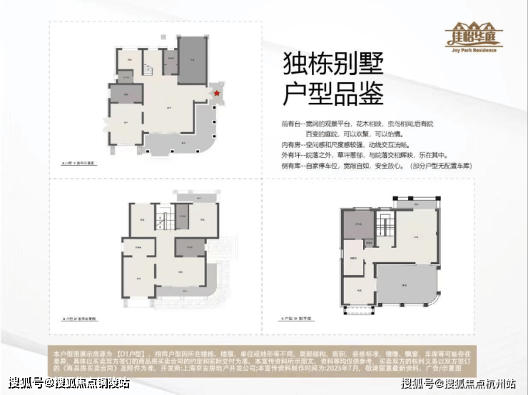 双拼:277-302㎡,4 房 2 厅 4 卫,地上 3 层 + 地下 1 层,南向 10.8 米面宽、全明通透、全景落地窗,附赠 80-120㎡私家庭院 + 双车位