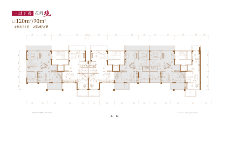 建面约120㎡3房2厅2卫/90㎡2房2厅2卫(一层下叠):