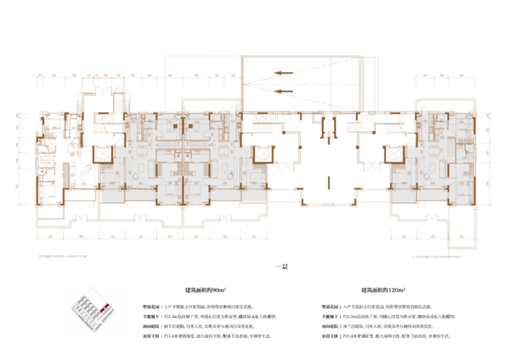 建面约90㎡/120㎡3房2厅2卫(一层下叠):
