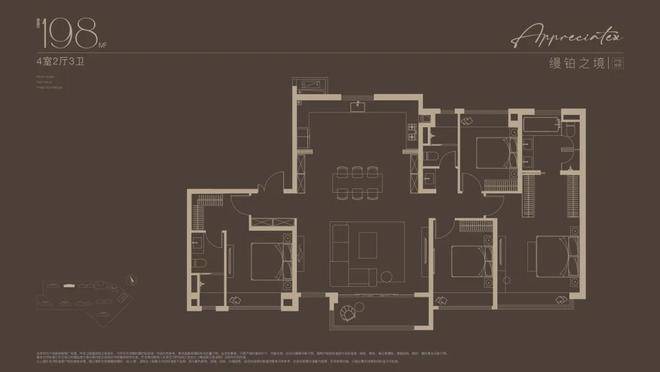 198㎡大平层是项目的“王炸”户型,约19米四开间朝南,南北通厅设计,十字中轴洄游动线,演绎云端平墅藏品。双套房全明卫设计,大幅提升居者生活品味与格调。