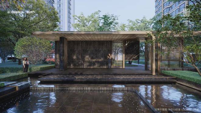 在社区的中心景观区,艺术草坪中心特设以“秋霞丹赪”为设计理念的艺术雕塑,让归家礼序徜徉于一个层层递进的轴线式院落,水韵造景、非遗文脉、森态曲径皆在其中。