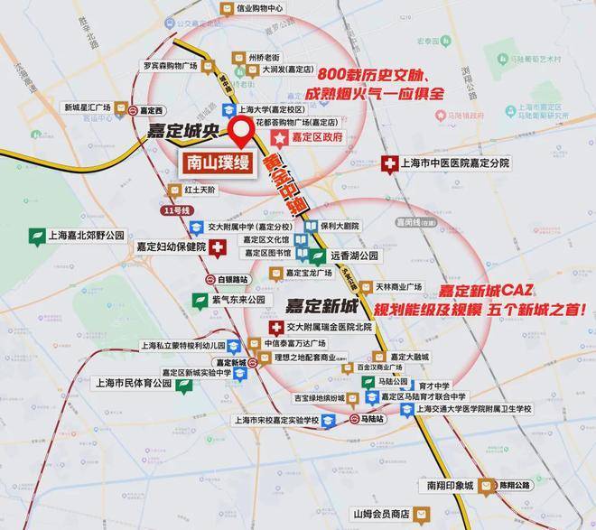 交通方面:项目距离地铁11号线嘉定新城站约1.5公里,未来规划中的嘉闵线将进一步提升区域交通便利性。此外,周边还有沪嘉高速、沈海高速、绕城高速等多条高速公路,自驾出行非常便捷。