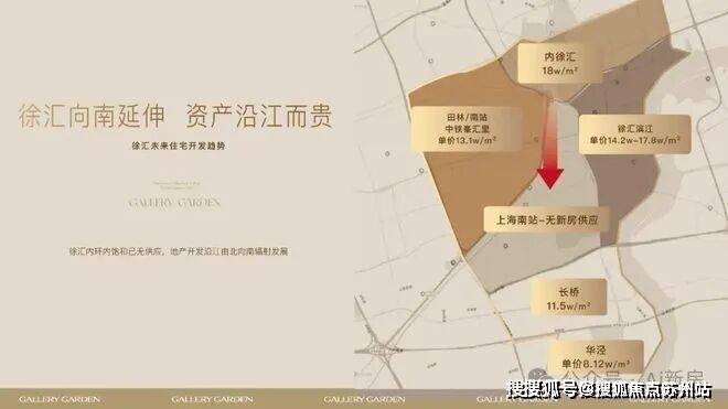 从徐汇开发趋势来看,徐汇向南延伸已成态势。近年来,徐汇作为热门的主城板块,住宅土地供应日渐紧张。随着内徐汇向南延伸,徐汇滨江以绝对实力承接了内徐汇的高单价,而随之南向开发的不断深化,上海南站区域暂无新房供应,而更靠近滨江的长桥板块相较之靠近徐汇腹地的田林、南站板块置业门槛更低,是典型的土地发展红利期。